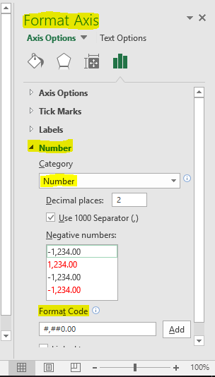 First we will edit the horizontal axis. By double clicking the axis, it will open a Format axis panel in the right of the chart as shown below.