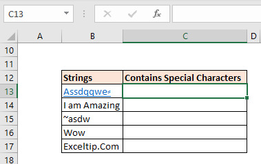 | =ContainsSpecialCharacters(B13) |
