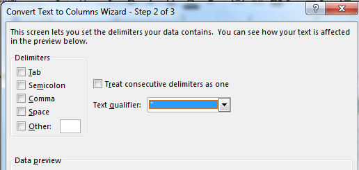 There are few common separator options available to select, like Tab, Semicolon, Comma, Space and Other. You can select one or more separators.