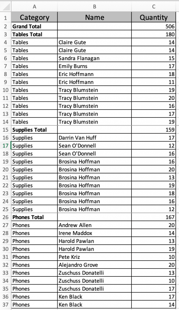 As you can see in the below image that subtotal remained but levels are not visible anymore