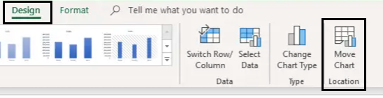 This will open up a move chart dialog box. Select the New sheet and name Chart1. This option will open a new sheet named Chart1 with the chart.